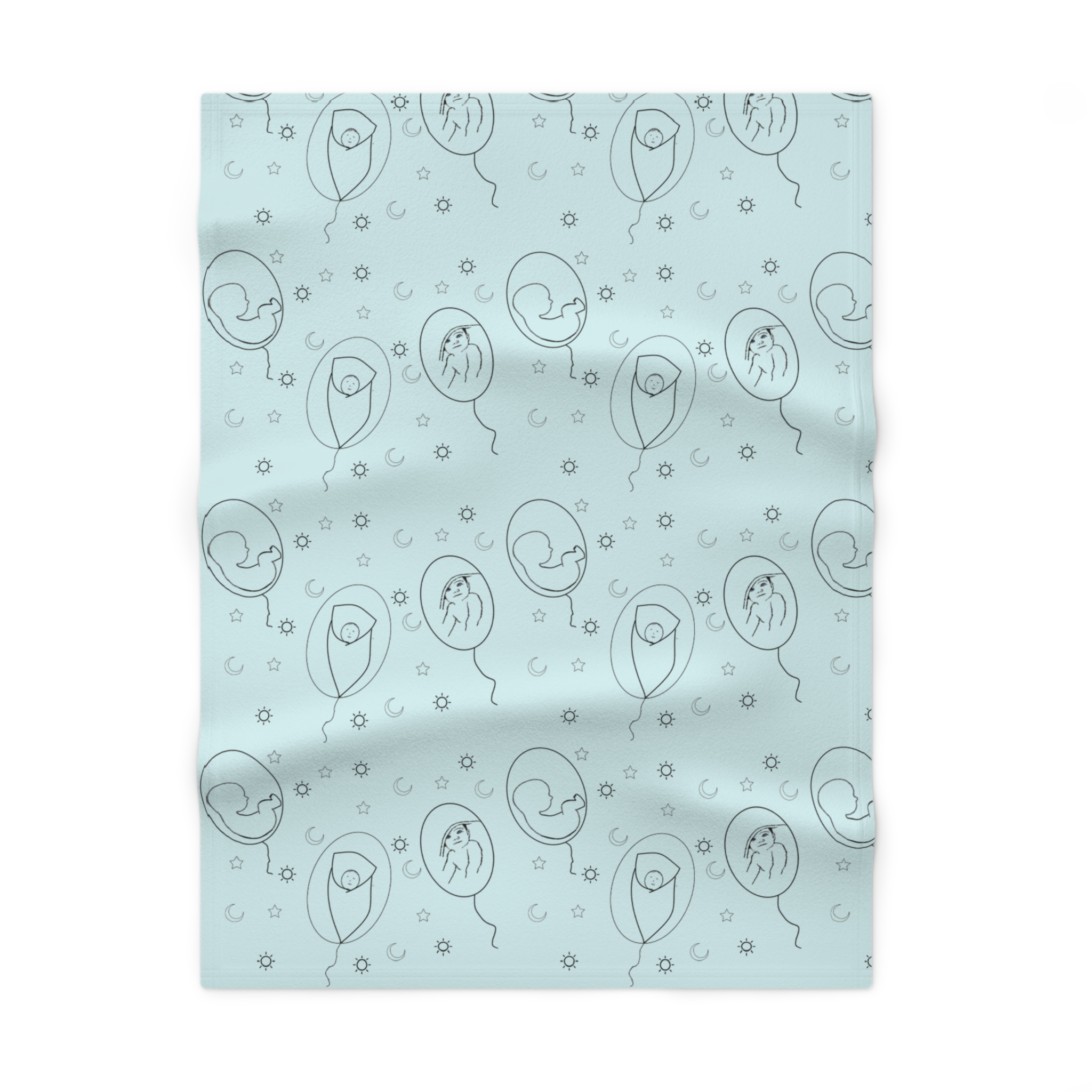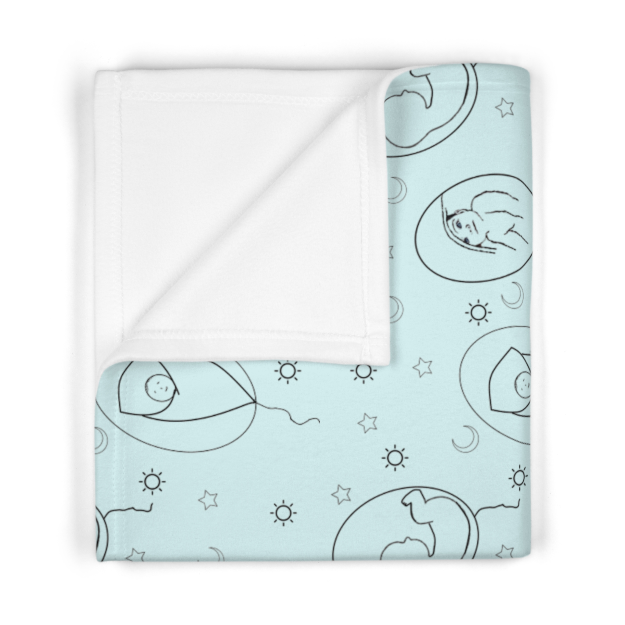 Fleece is king when it comes to fluffy softness. As such, the personalized fleece baby blanket is a cuddle necessity. 30” by 40”, this 100% polyester rectangle supports printing on one side. These items are preconstructed before printing, so exact symmetry is not guaranteed. Due to the microfiber construction, small colored dots may pop up. A cold wash cycle and a tumble dry, however, should reduce this possibility.