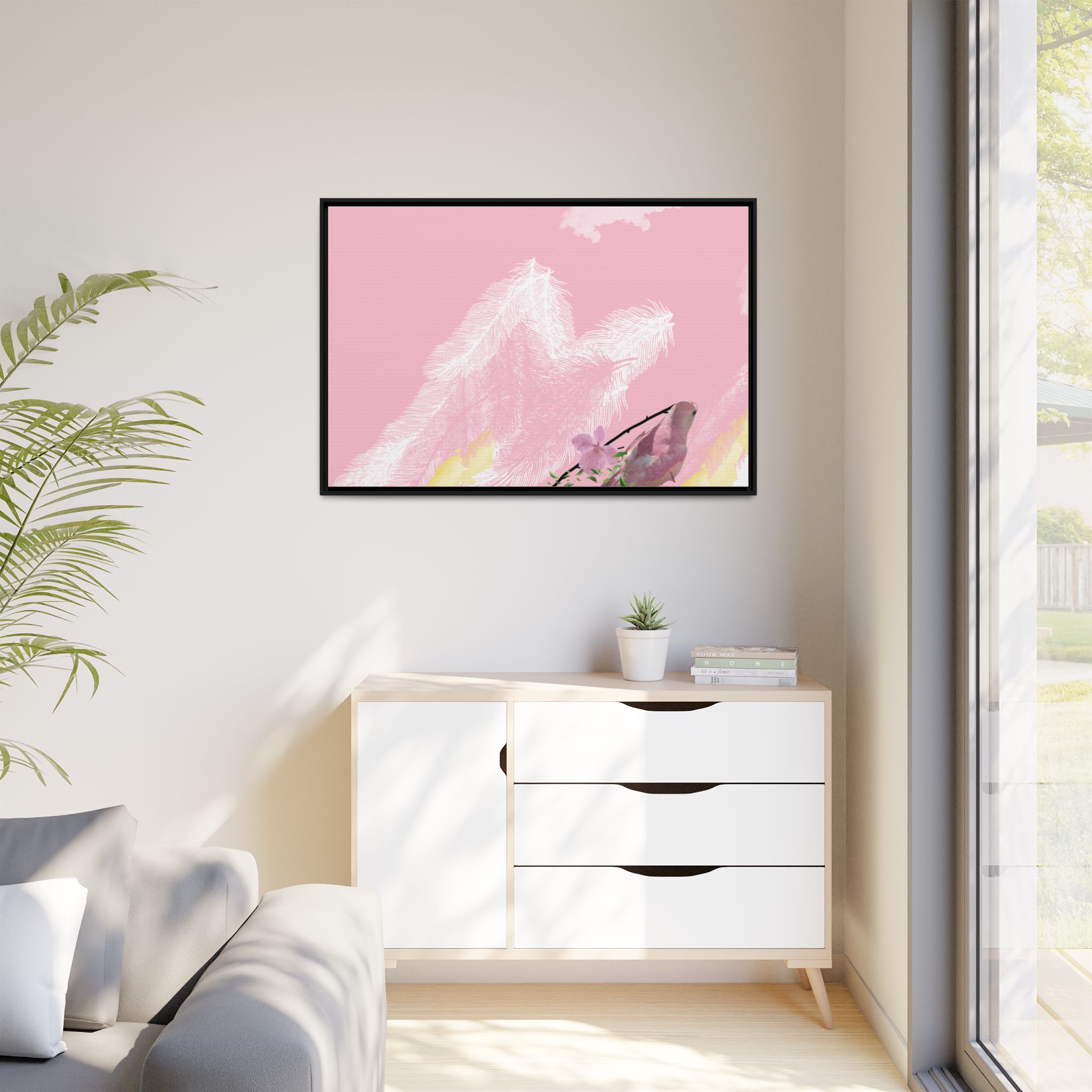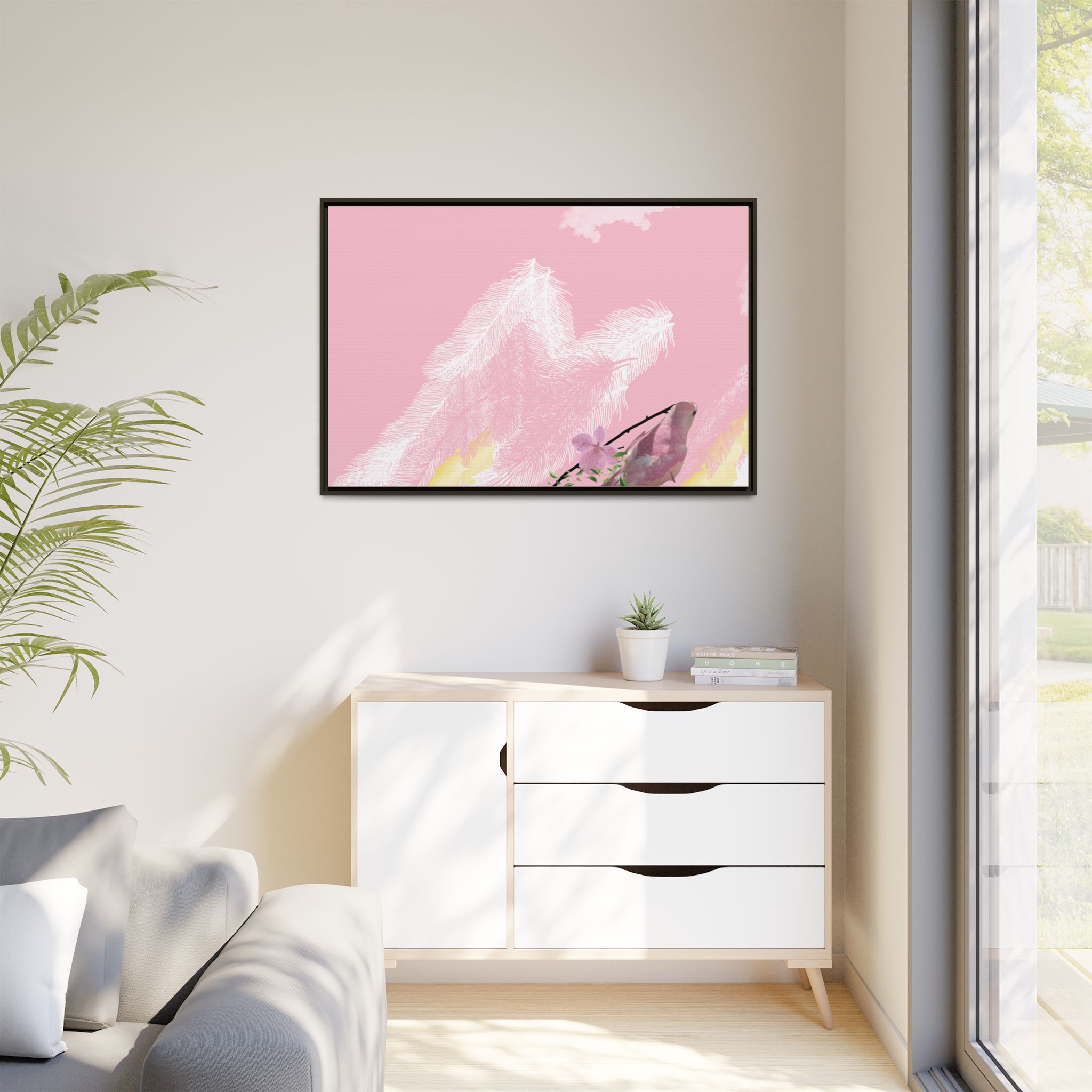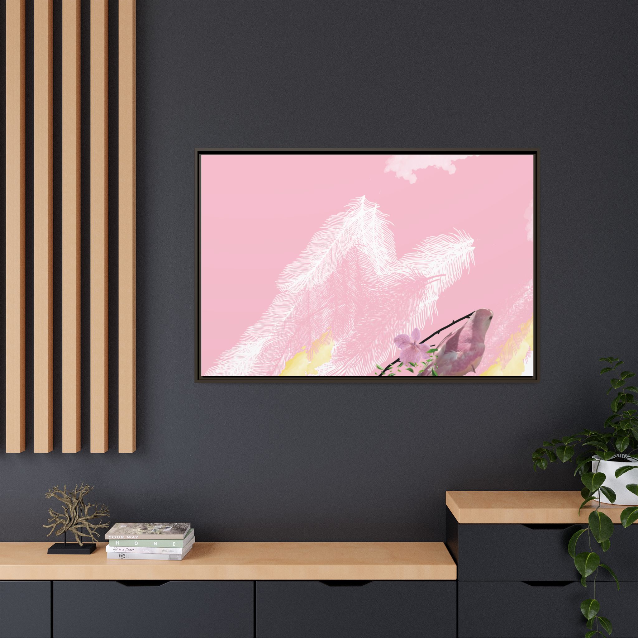 Enhance any interior space with beautiful art framed in a pinewood frame. Printed on a cotton-polyester canvas with a special proprietary coating to ensure long-lasting, vibrant colors and eye-catching detail. Made with sustainably sourced materials (Forest Stewardship Council certified), these frames are an eco-friendly choice. Choose between multiple sizes, and between 3 colors that matches your surroundings. The sawtooth hanging hardware is already attached.