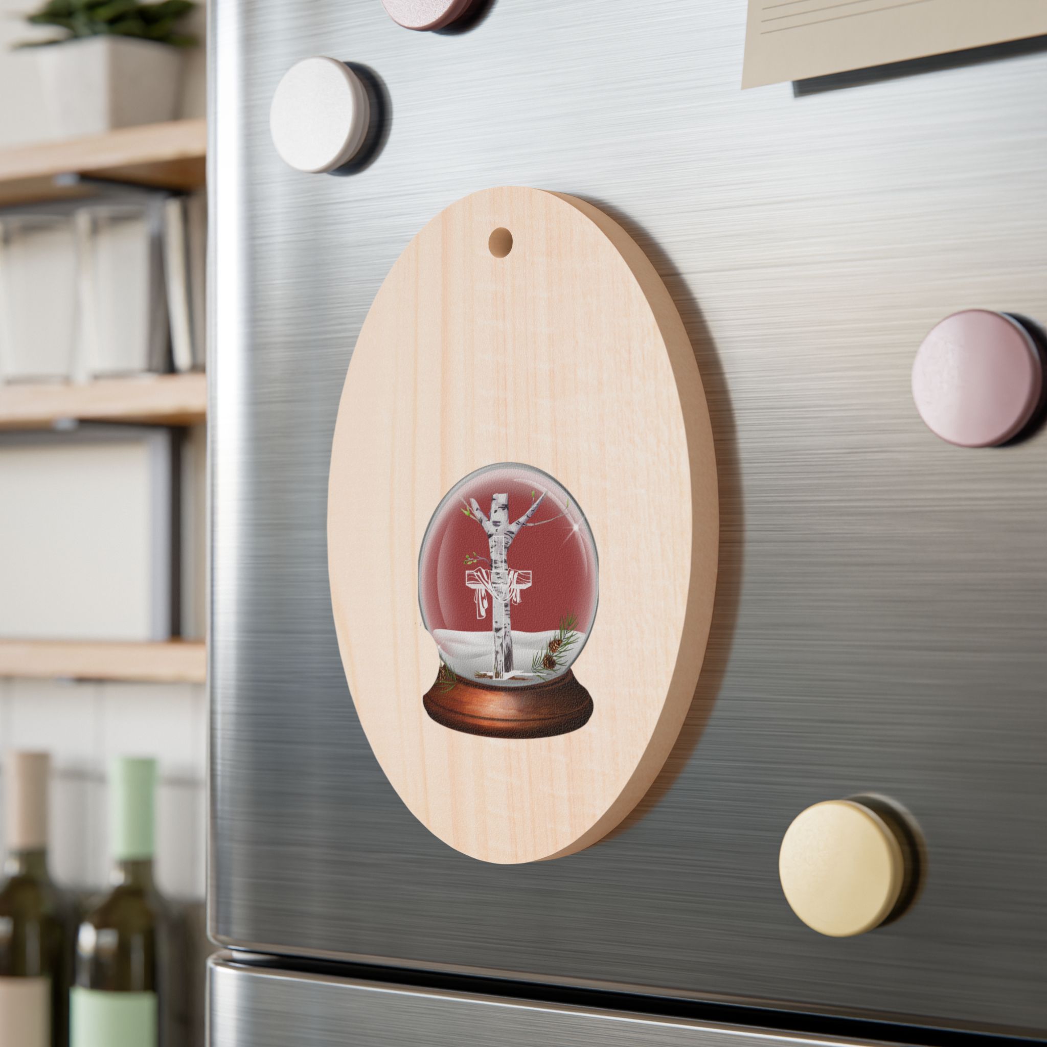 Created to add a personal decorating touch to any space around the house, these personalized wooden ornaments are packed with rustic charm. Each ornament features a handy magnetic back for effortless placement on metal surfaces, and a stylish red ribbon for effortless hanging.