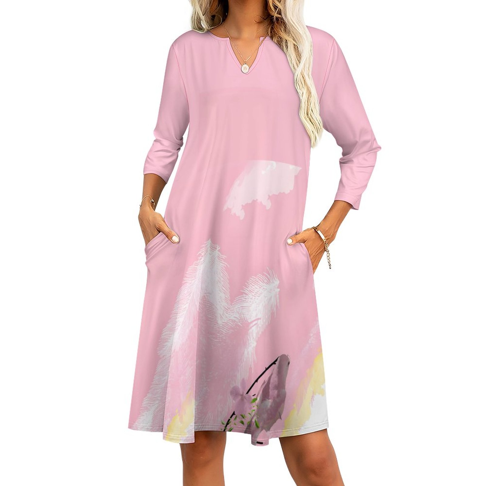 - Quality fabric: Neither pilling and nor fading, the polyester and spandex fabric is comfortable-to-wear for long-term wearing, with thoughtful pockets: Excellent for your leisure time, this classic-style 3/4 Sleeve Dress is never out of date and can stand the test of time. Show your charm: Printed with distinctive patterns, the V-neck 3/4 Sleeve Dress with Pockets makes you stylish, charming and confident.