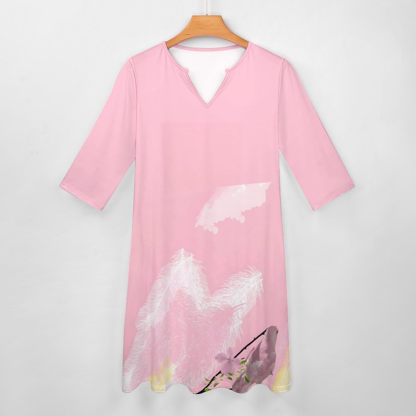 - An abstract print of a bird and the colors coming together as beautiful soft pink color print.