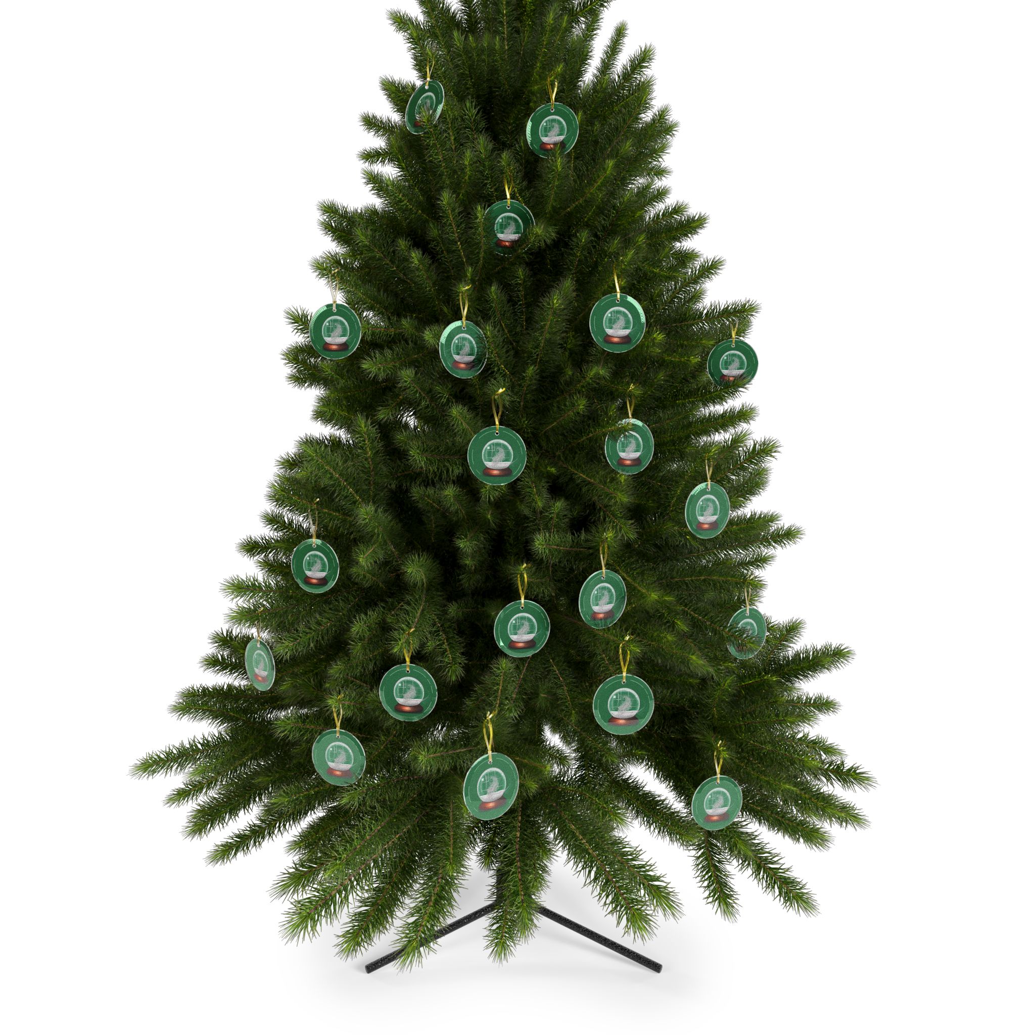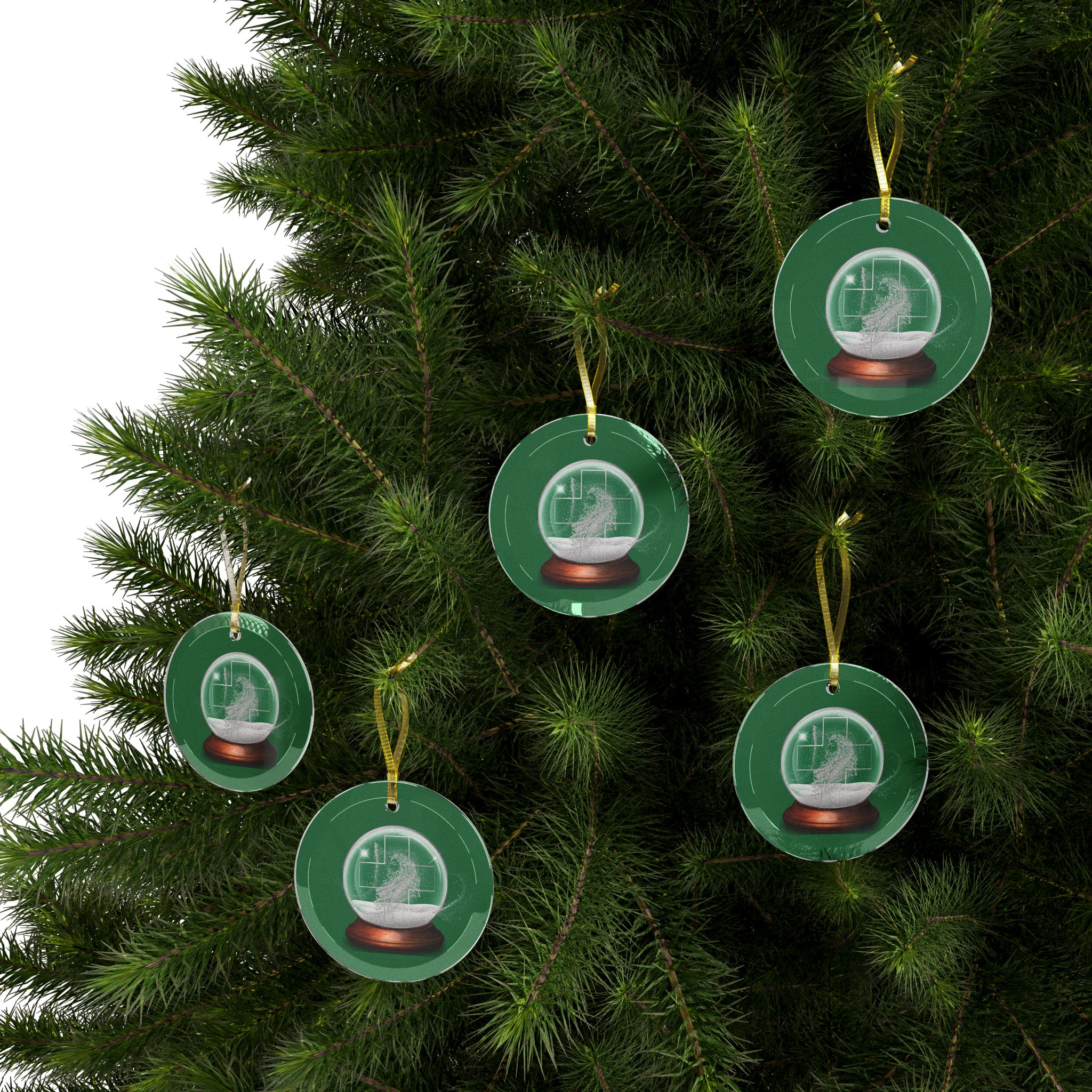 All ornaments are 100% glass, one size (3.5″/ 88.9mm), and come with beveled edges and a gold ribbon for that extra flair. The artwork inside is a high-quality print that is visible from one side.