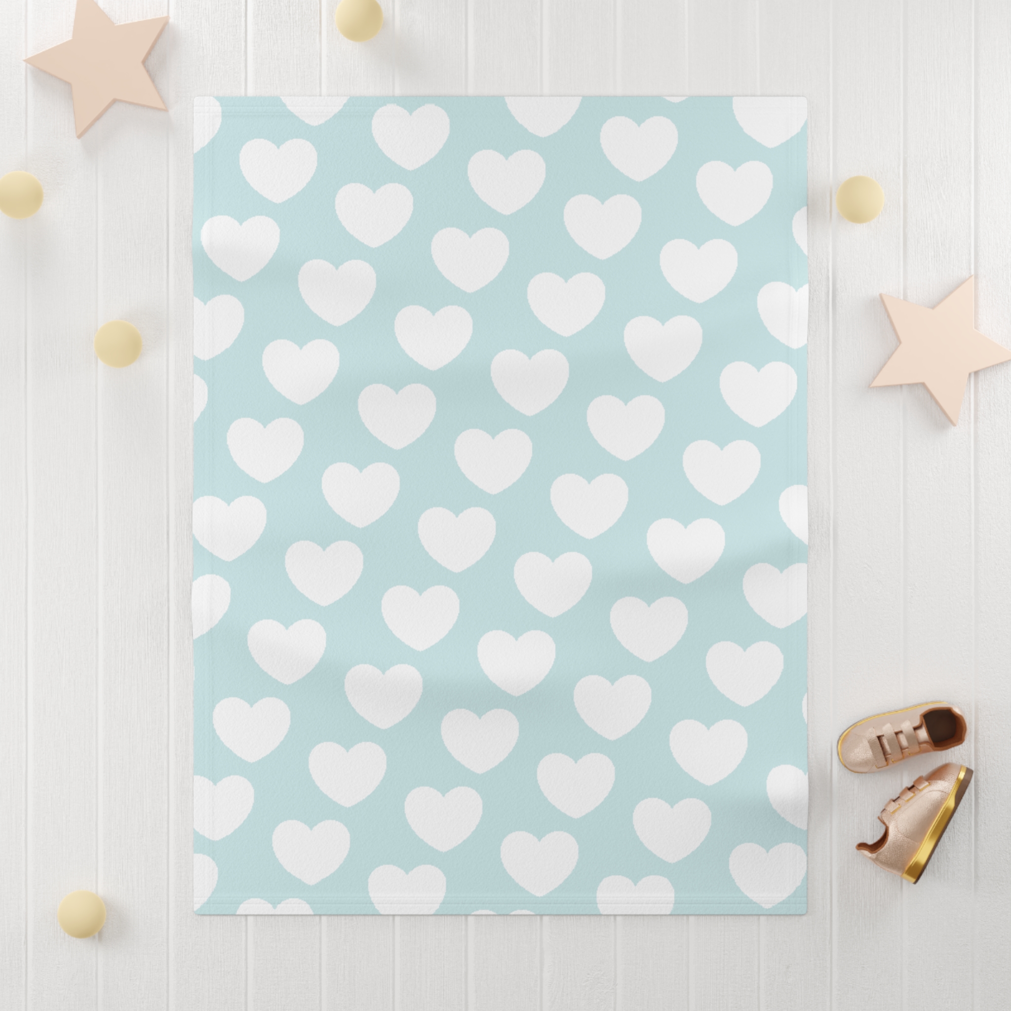 Fleece is king when it comes to fluffy softness. As such, the personalized fleece baby blanket is a cuddle necessity. 30” by 40”, this 100% polyester rectangle supports printing on one side. These items are preconstructed before printing, so exact symmetry is not guaranteed. Due to the microfiber construction, small colored dots may pop up. A cold wash cycle and a tumble dry, however, should reduce this possibility.