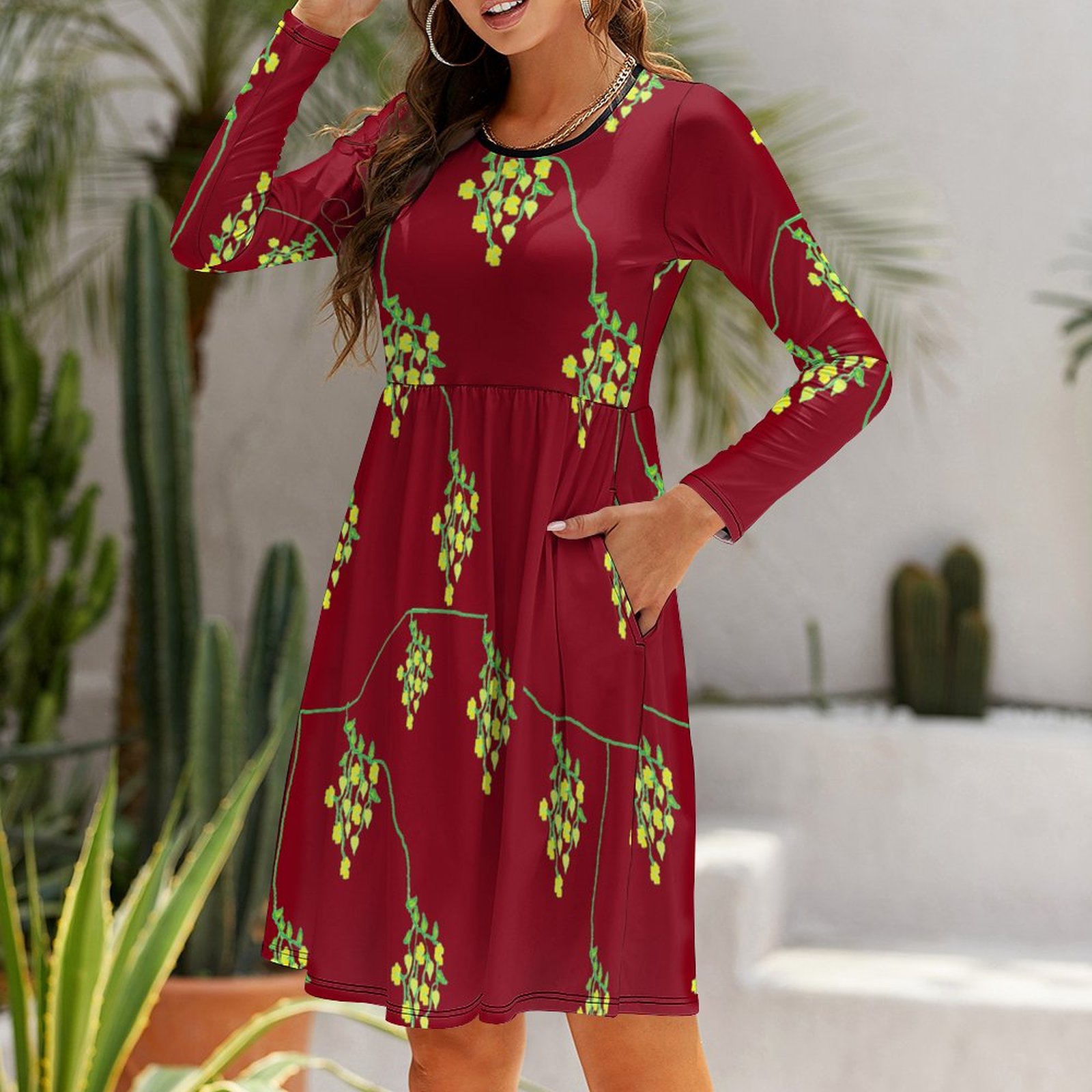 Round Neck Long Sleeve Dress with Pocket NZ036 (All-Over Printing)