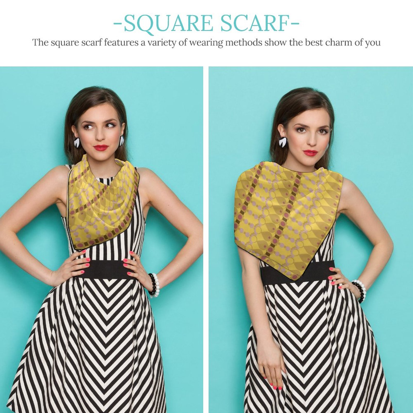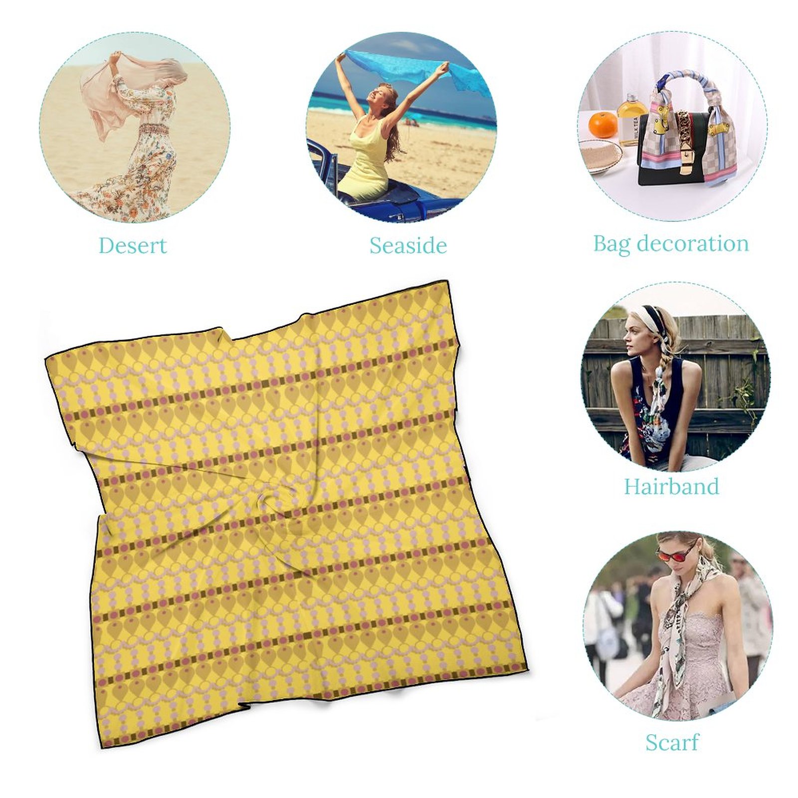 - Product Performance: The Women’s Scarf is made of breathable, wrinkle-resistant and skin-friendly fabric, The Women’s Scarf adopts precise hemming-stitch techniques, no jump needle and drop-off. The workmanship shows the texture of the product. The Women’s Scarf offers different kinds of dressing ways. The Women’s Scarf can be used as neckerchief, scarf bracelet, also head and hair band and so on. Also, the Women’s Scarf can also be a decoration for leather bags, bamboo bags, paper bags, etc.