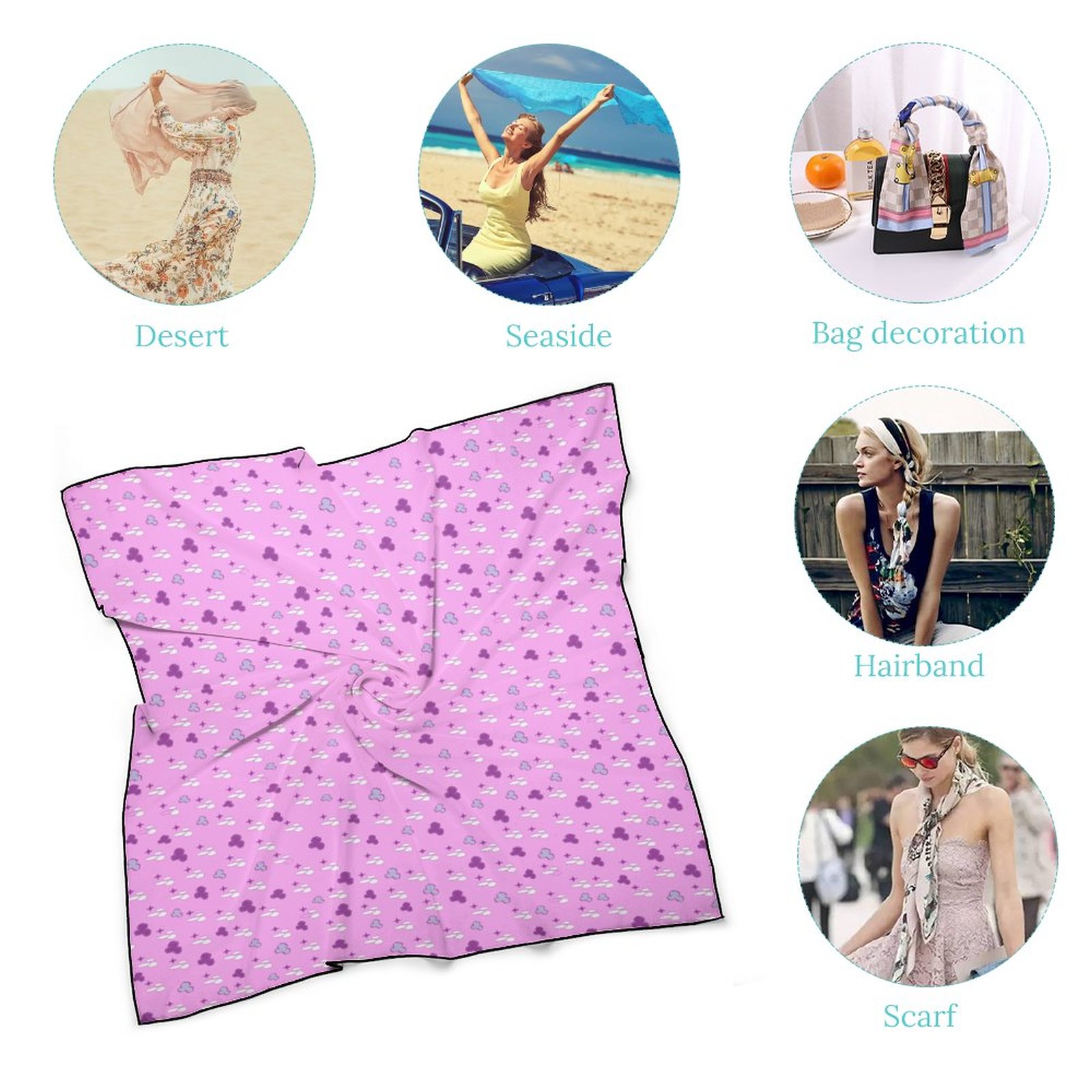 - Product Performance: The Women’s Scarf is made of breathable, wrinkle-resistant and skin-friendly fabric, The Women’s Scarf adopts precise hemming-stitch techniques, no jump needle and drop-off. The workmanship shows the texture of the product. The Women’s Scarf offers different kinds of dressing ways. The Women’s Scarf can be used as neckerchief, scarf bracelet, also head and hair band and so on. Also, the Women’s Scarf can also be a decoration for leather bags, bamboo bags, paper bags, etc.