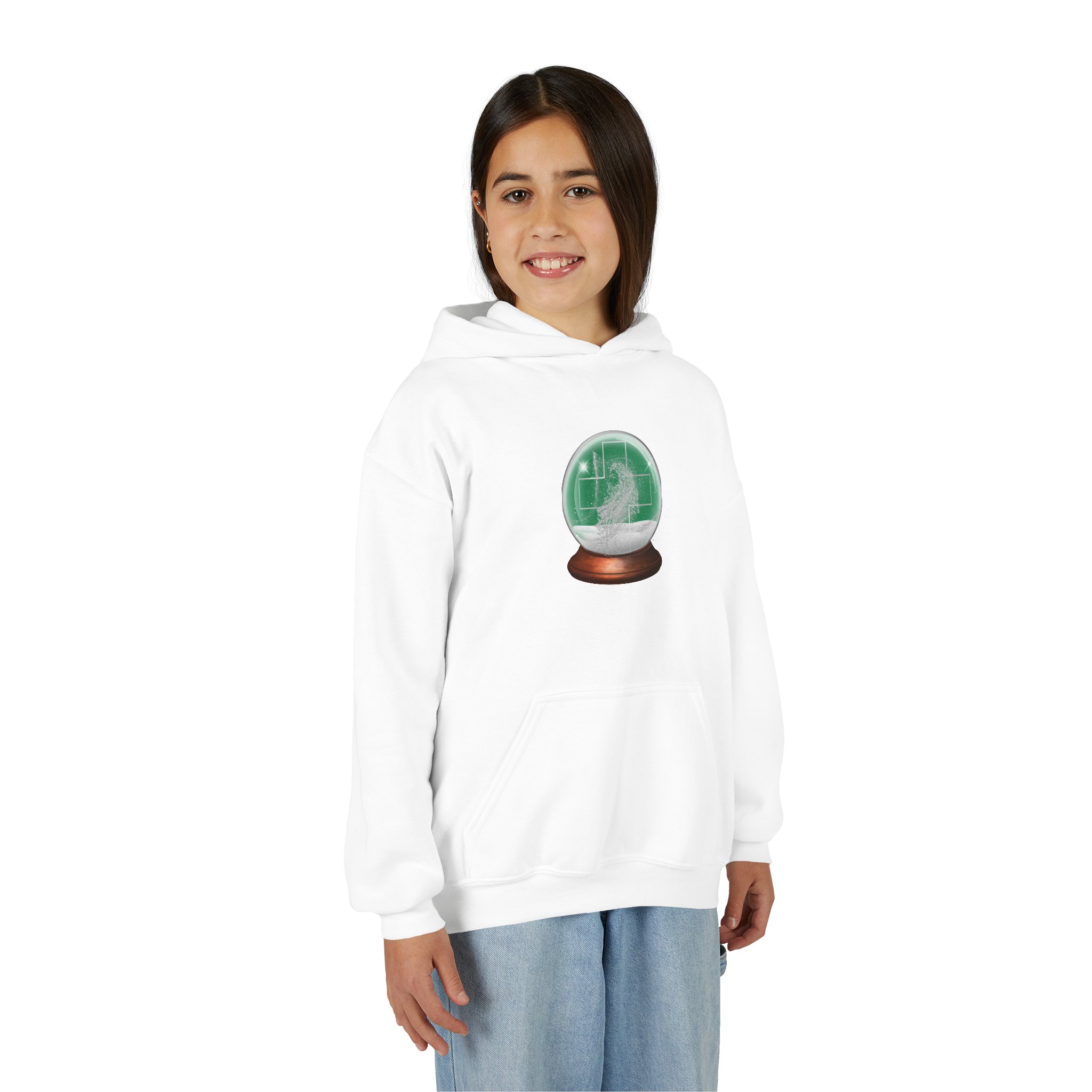 A cozy, youth-sized hoodie that carries a quiet, magical vibe. Soft medium-weight fabric holds a detailed crystal-ball illustration on the chest, The roomy kangaroo pocket becomes a hideaway for cold hands and small treasures. Product features